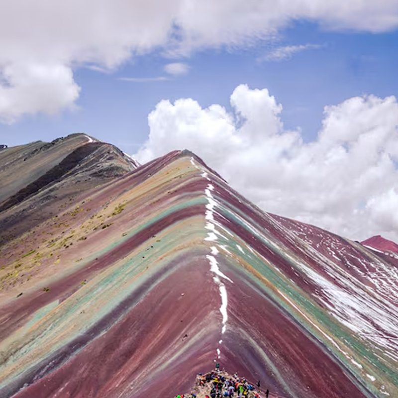 La Montaña de 7 Colores, también conocida como Vinicunca o Montaña Arcoíris, es uno de los destinos más impresionantes del Perú y una parada obligatoria para quienes visitan Cusco. Ubicada a más de 5,000 metros sobre el nivel del mar, esta maravilla natural deslumbra por sus tonalidades únicas de rojo, amarillo, verde, morado y turquesa, producto de la composición mineral de sus suelos andinos. Considerada una de las atracciones turísticas más populares de Sudamérica, la Montaña de 7 Colores ofrece una experiencia inolvidable entre paisajes de alta montaña, llamas, alpacas y picos nevados como el Apu Ausangate, una de las montañas más sagradas del mundo andino.